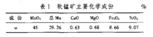 據(jù)有關(guān)部門了解,軟錳礦主要由沉積作用形成,我們以常寧地區(qū)軟錳礦為例,軟錳礦礦石成分有